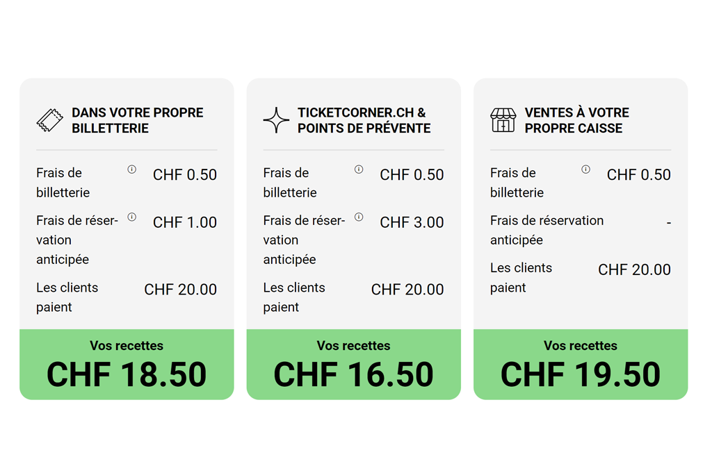 Votre événement, notre outil de vente de billets. En tant qu'organisateur, mettez en place facilement et rapidement votre propre billetterie et vendez des billets sur votre propre site Internet, sur ticketcorner.ch et à la caisse du soir. Commencez dès aujourd'hui à vendre vos billets!