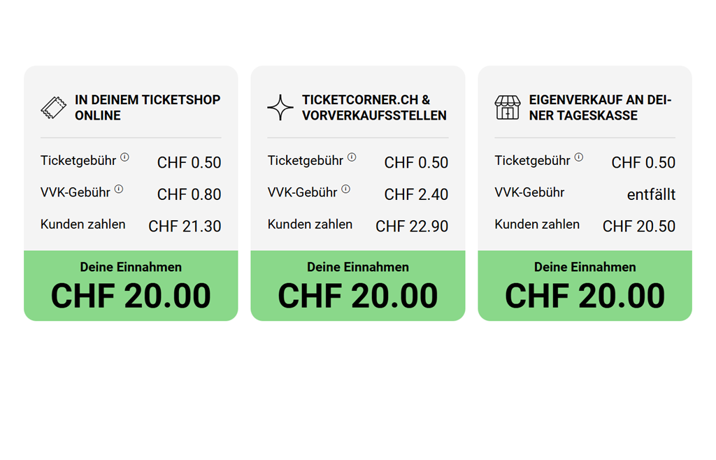 Rund 10 Millionen Tickets werden jährlich über die Systeme von Ticketcorner verkauft. Nutze die Reichweite von ticketcorner.ch und rund 130 Vorverkaufsstellen schweizweit für deinen Verkaufs-Boost.